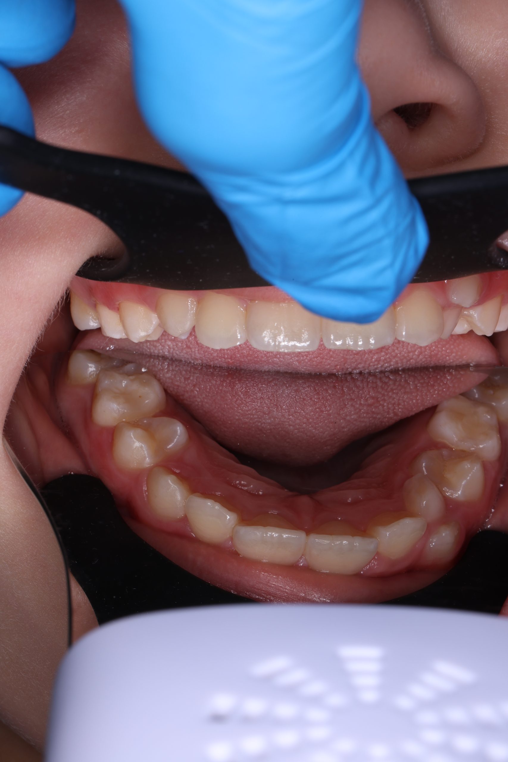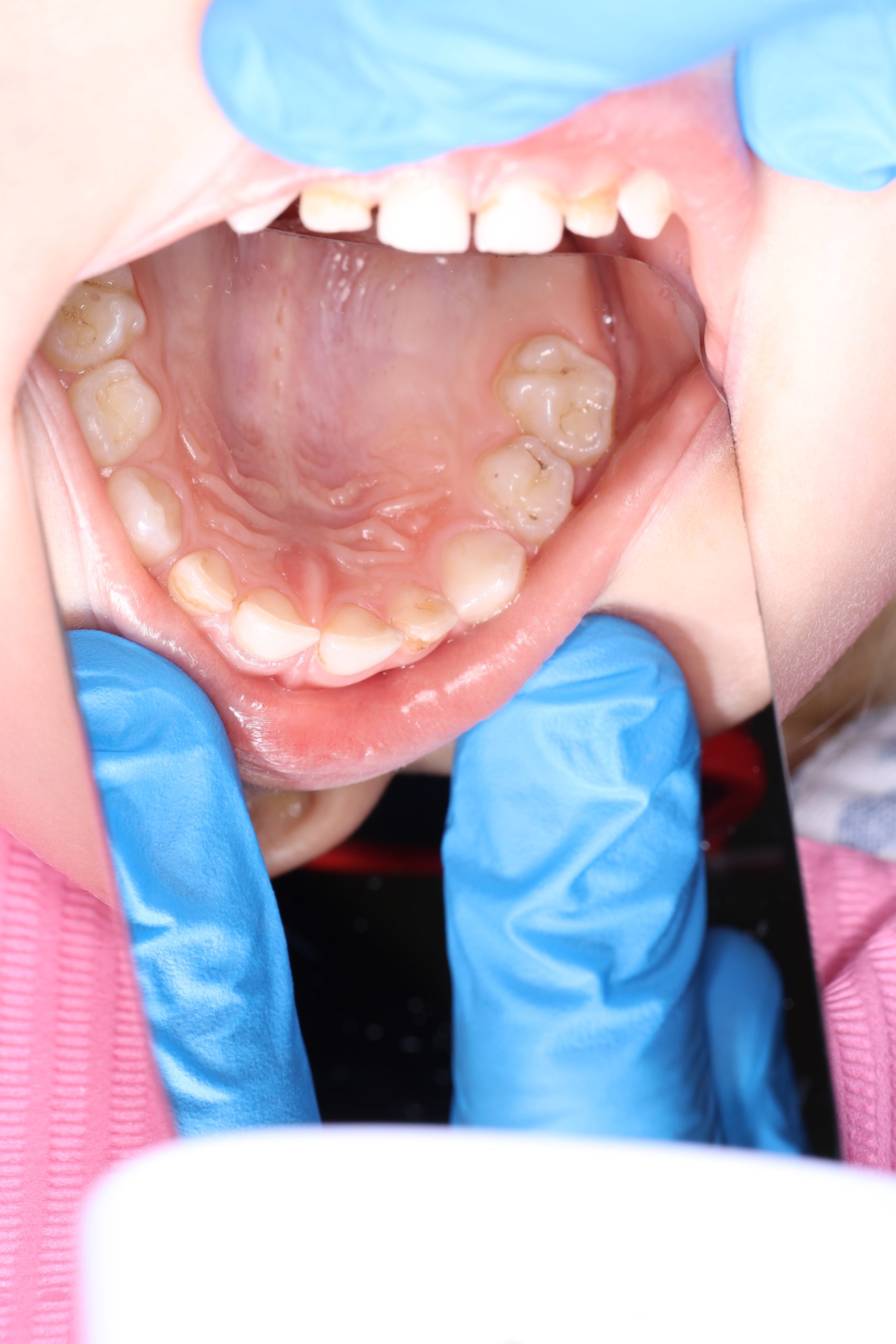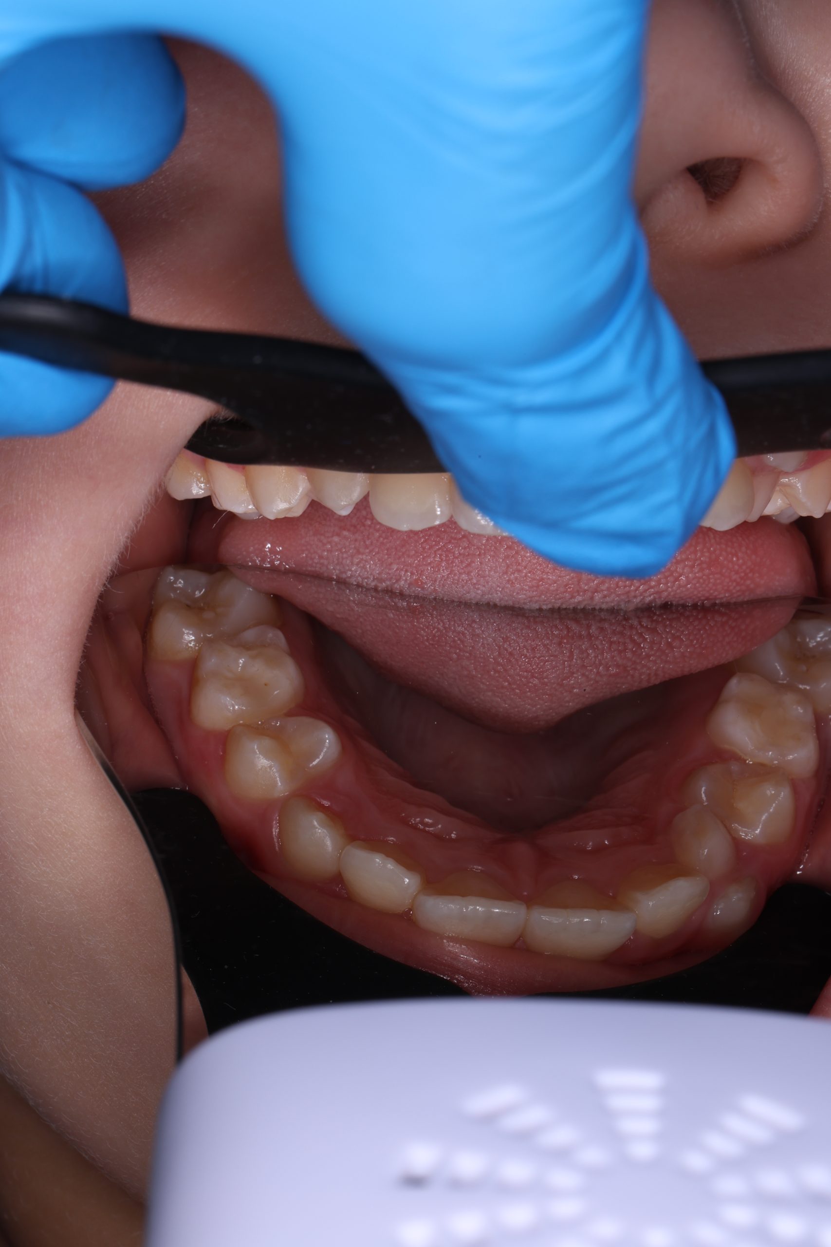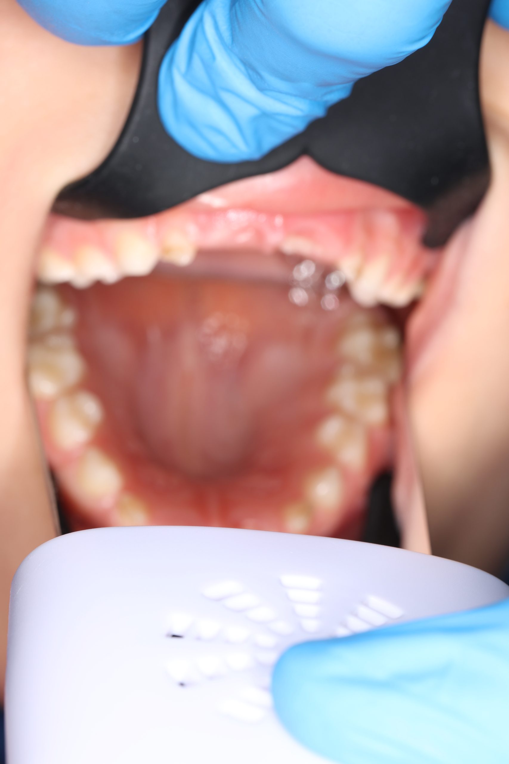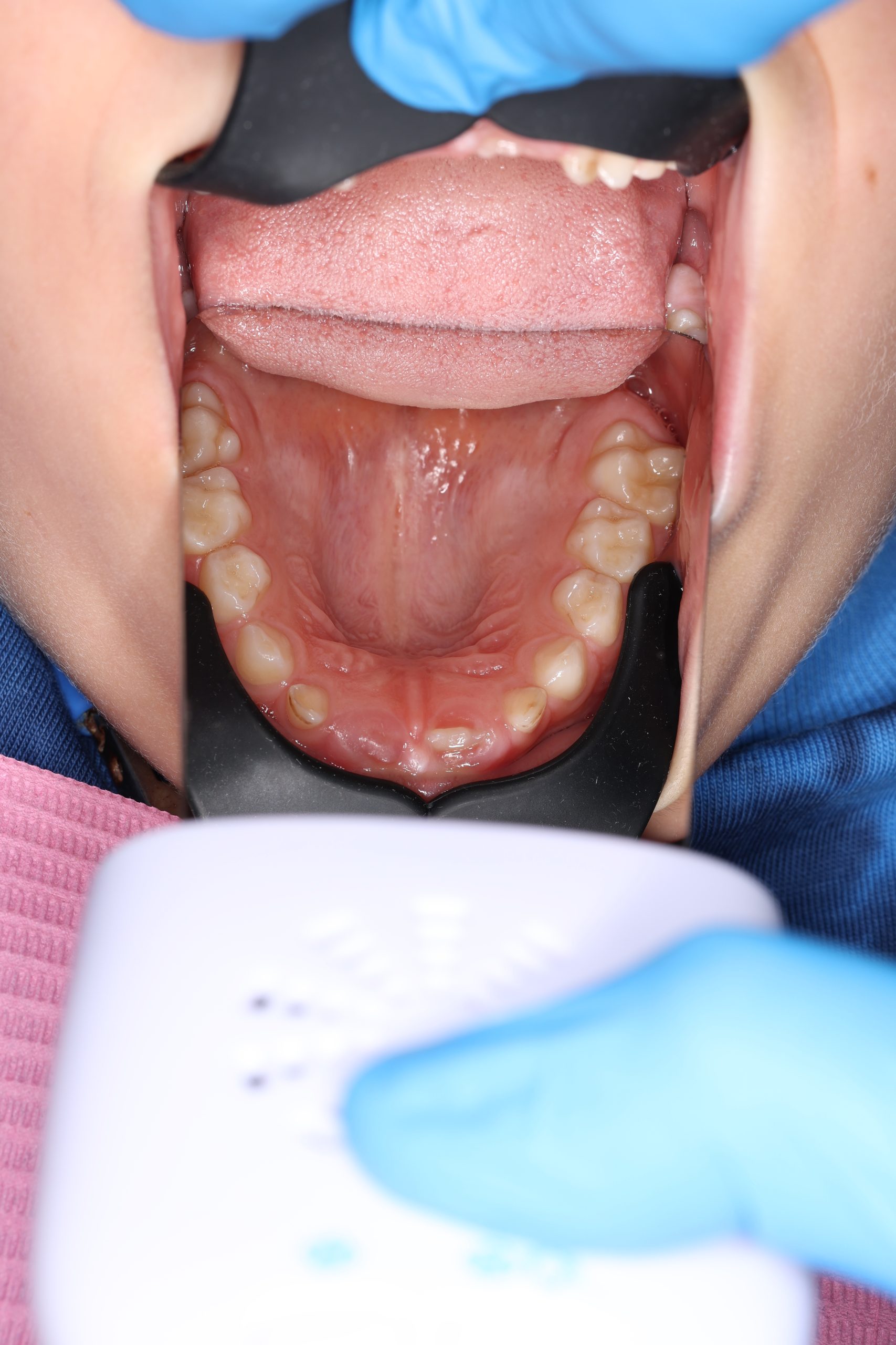 If the child is cooperative, we perform full professional hygiene. If not, we begin with adaptive cleaning – a gentle way to introduce them to dental care and build trust.