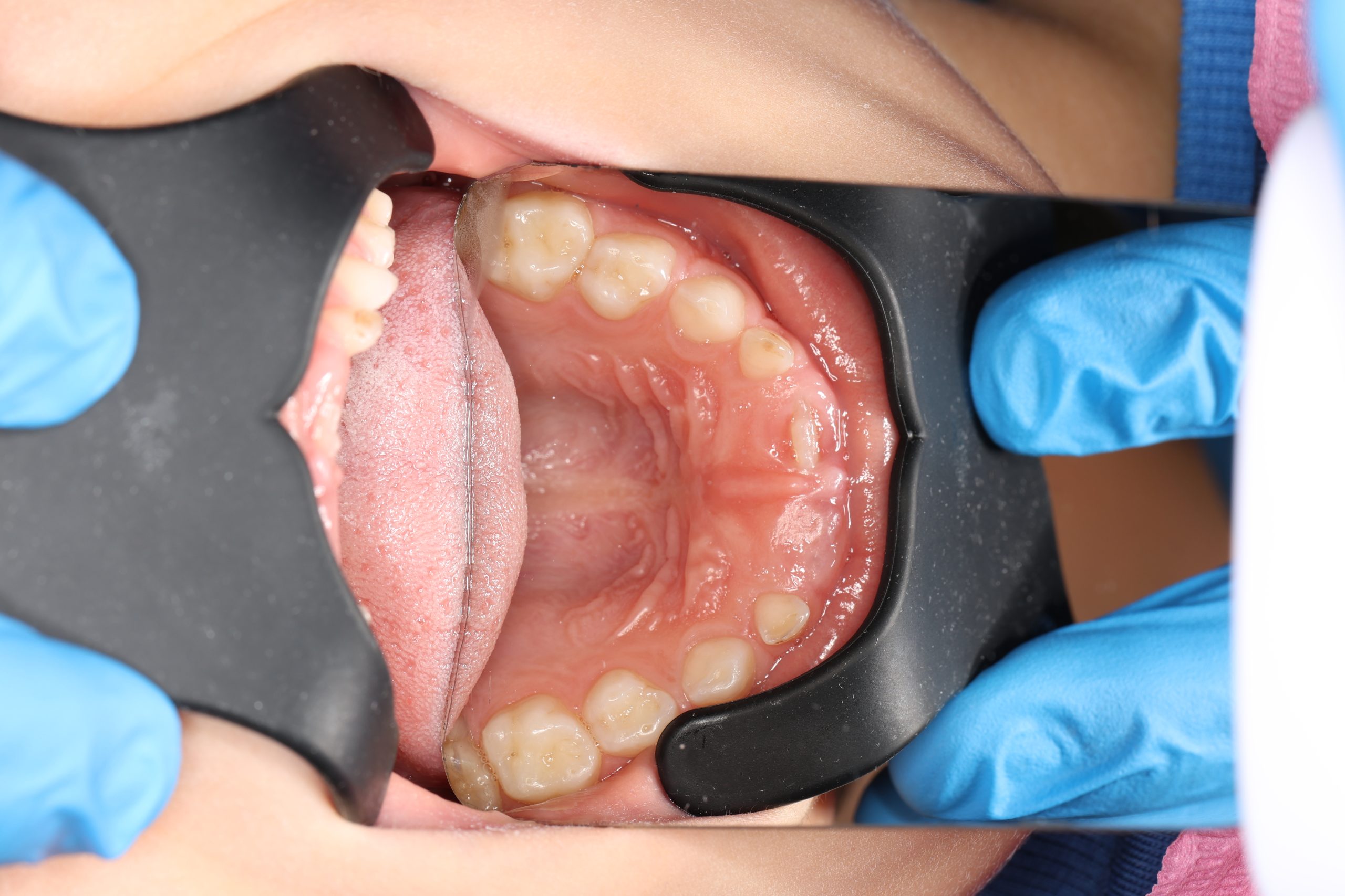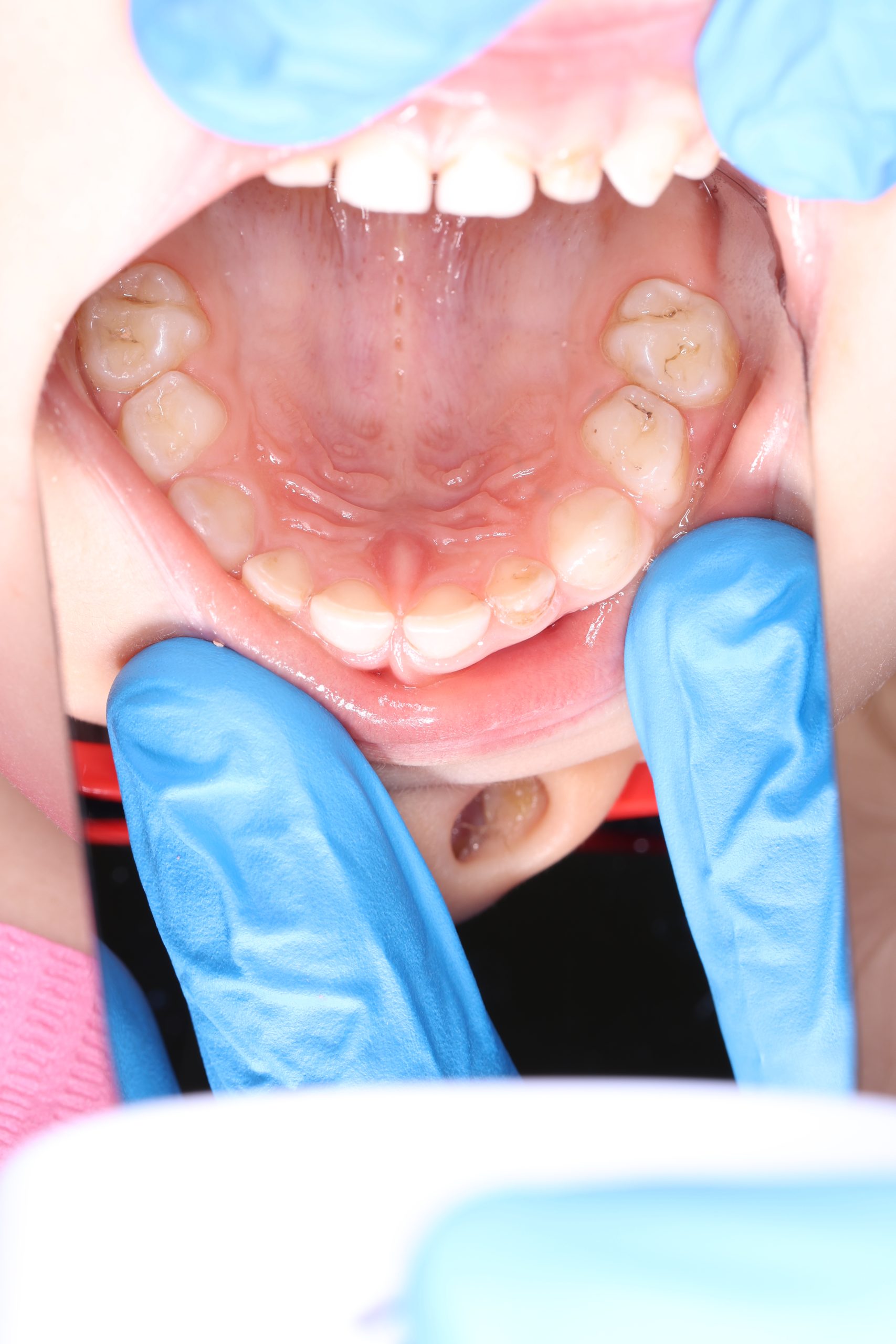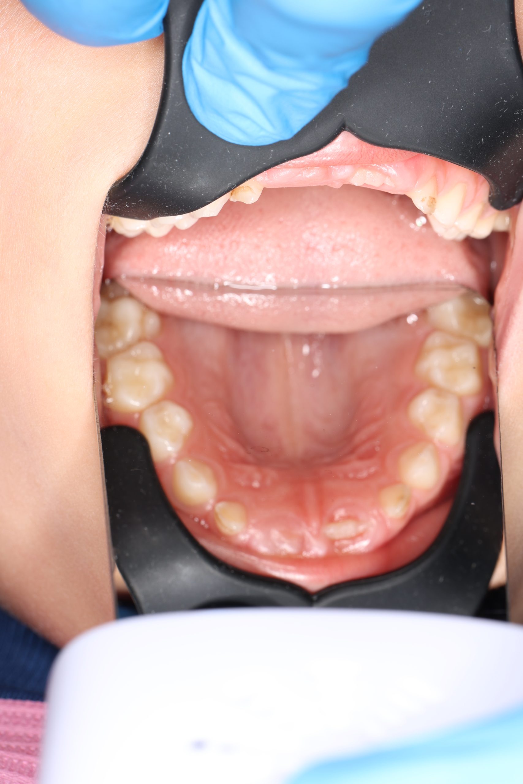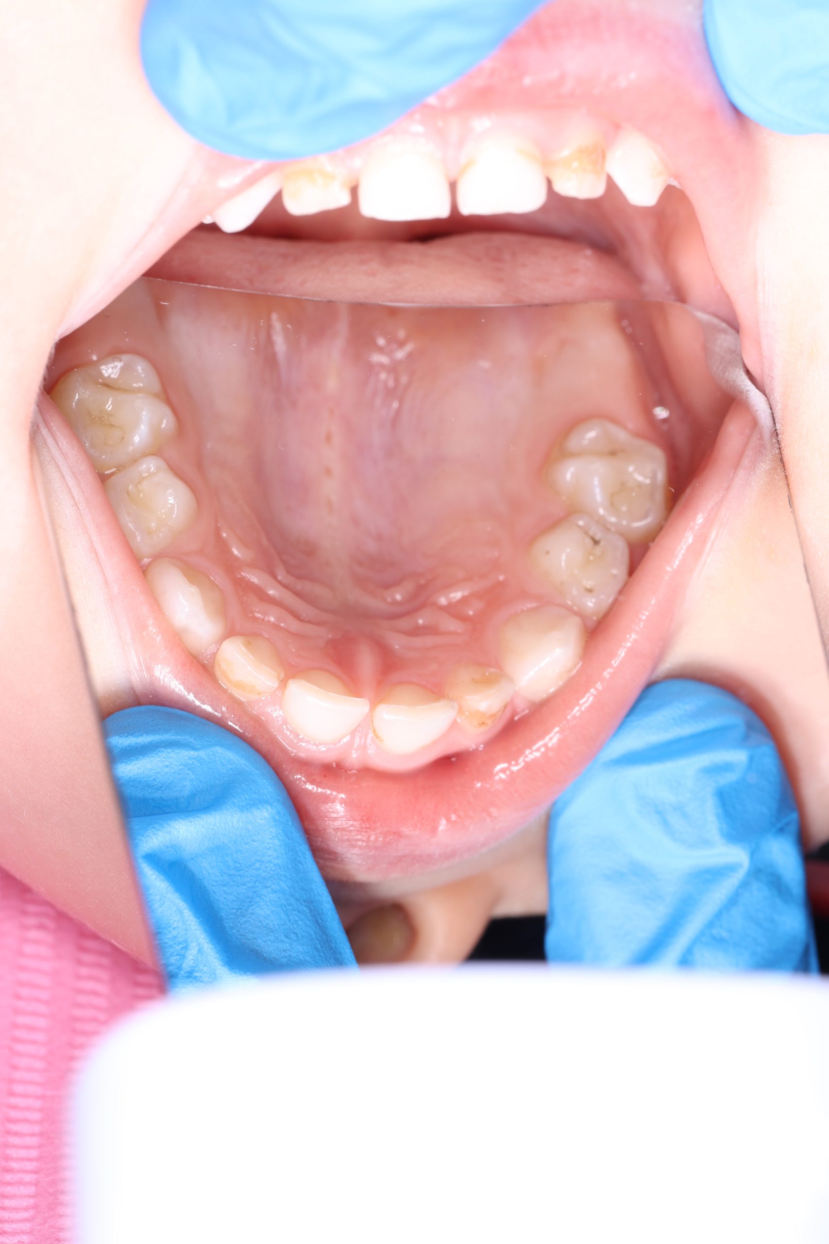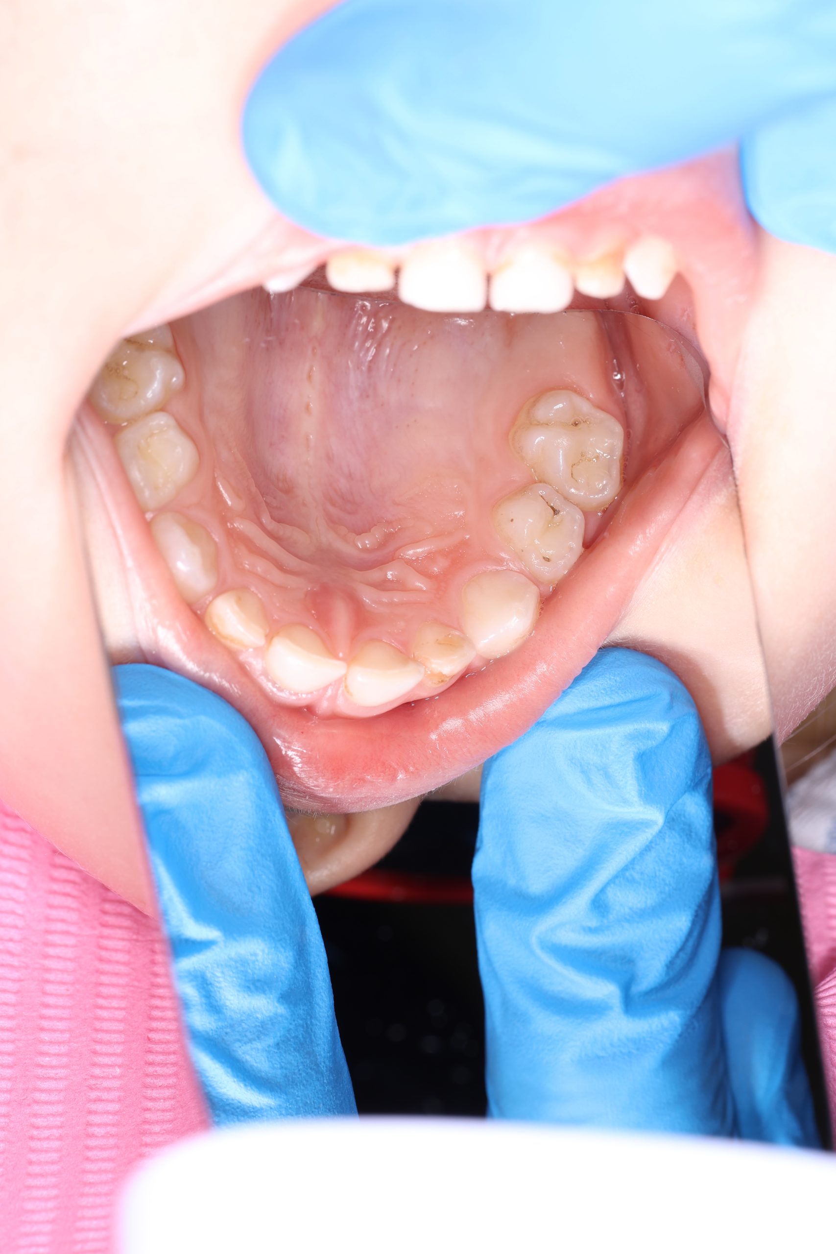 If the child is cooperative, we perform full professional hygiene. If not, we begin with adaptive cleaning – a gentle way to introduce them to dental care and build trust.