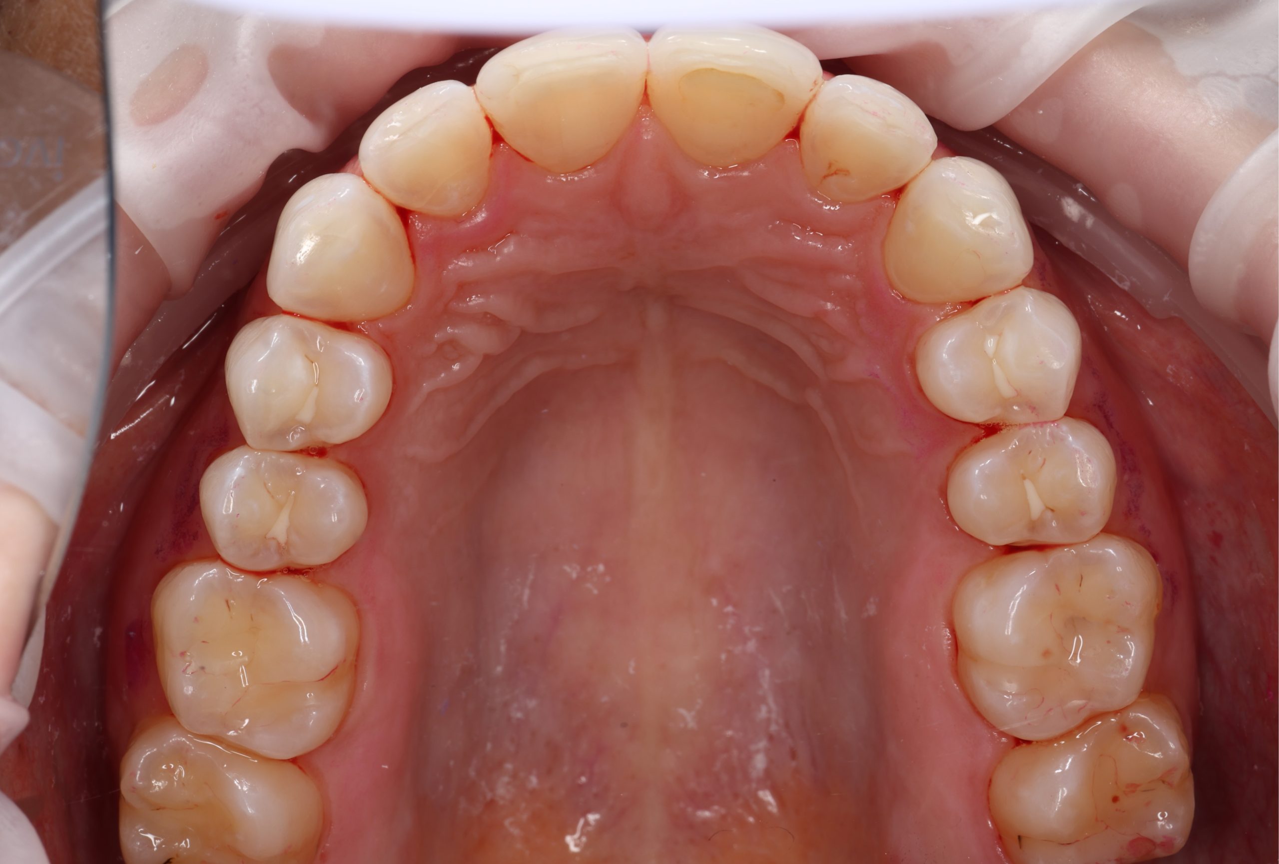 We recheck all surfaces to ensure complete biofilm removal. This clean surface allows early-stage caries to be diagnosed more accurately. We then apply fluoride or remineralizing gel to strengthen enamel.