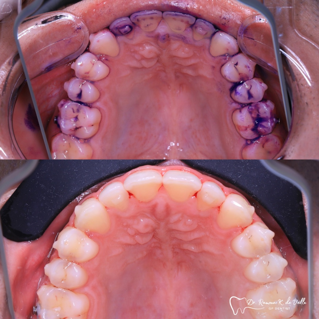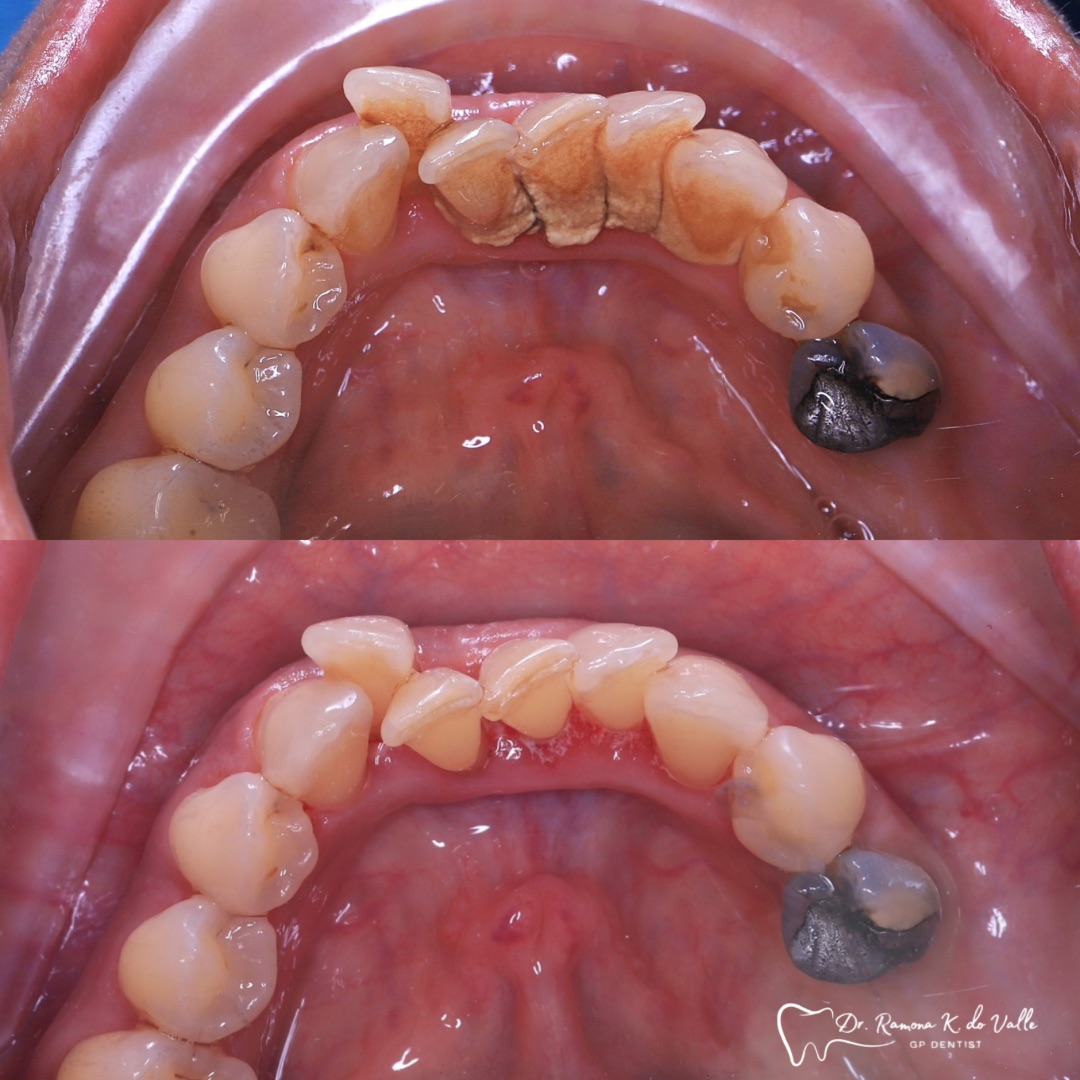 We use plaque-disclosing dye and before/after photos to track results and ensure total cleaning.
